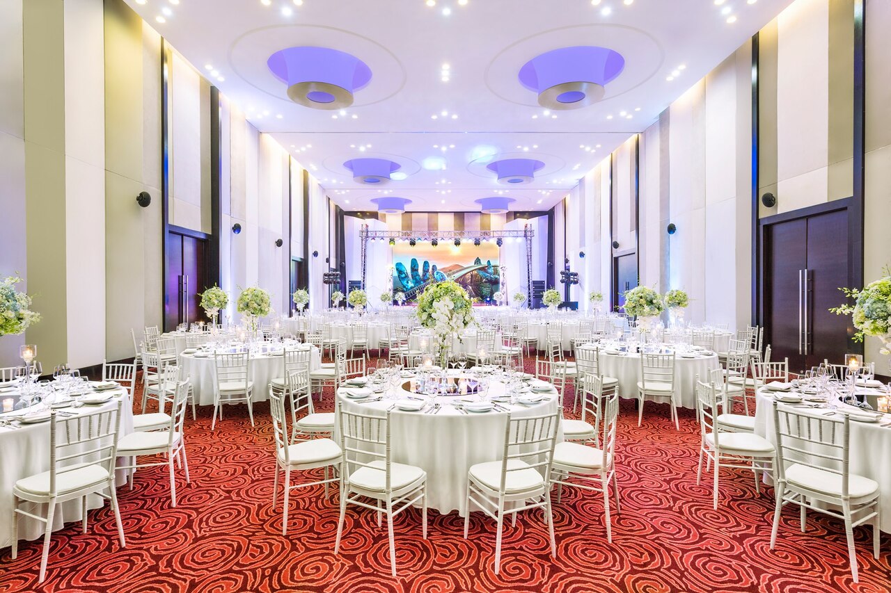 Không gian phòng hội nghị rộng hơn 1000m2, bao gồm Sơn Trà Grand Ballroom với sức chứa đến 520 người, đây là địa điểm lý tưởng để tổ chức hội nghị công ty, những buổi lễ kỷ niệm gia đình, những dịp đặc biệt.